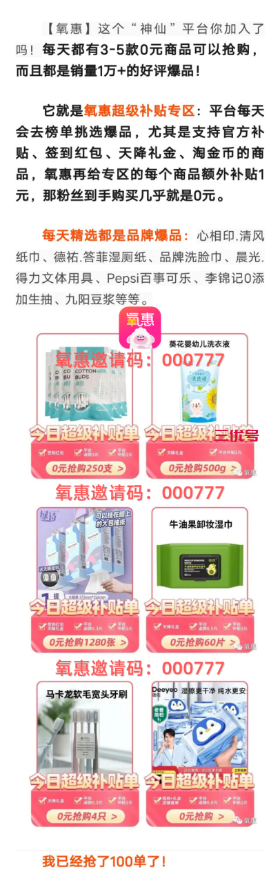 (手机应用商店搜索“氧恵”下载,登录填写氧恵邀请码:000777,注册即享超高返利佣金,自用省,分享赚!)